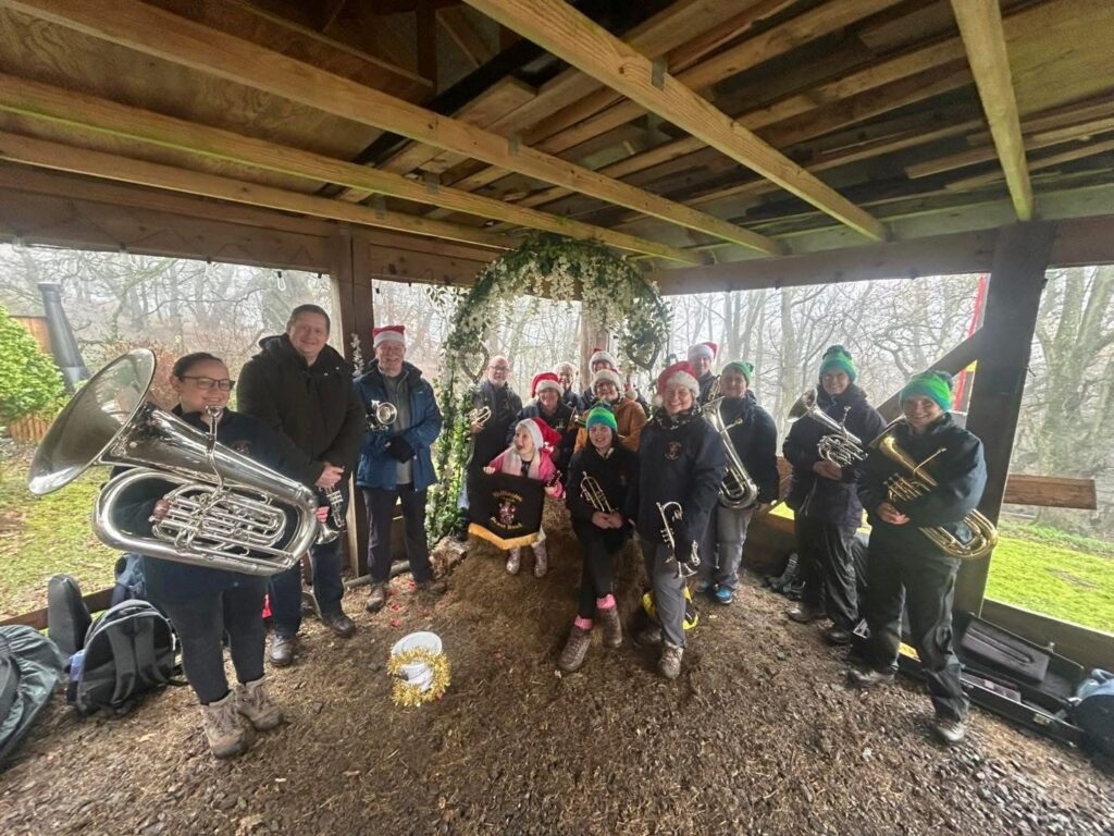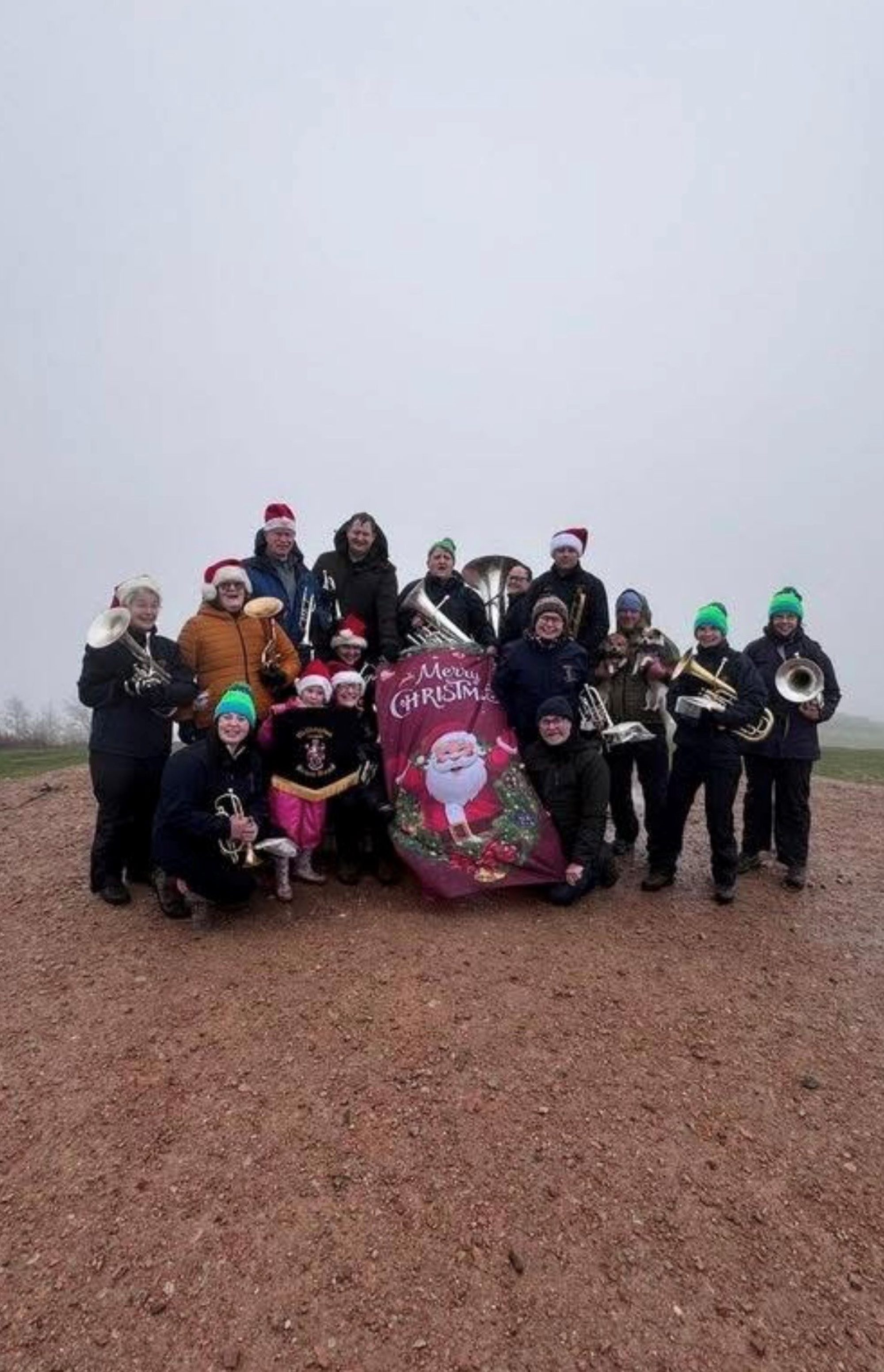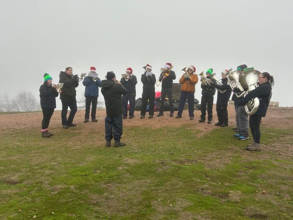 Despite the blustery gusts and persistent drizzle, our hardy band members made the climb with instruments in tow, gathering at the summit to perform a selection of well-loved Christmas carols. Passers-by and fellow walkers were treated to an unexpected high-altitude concert, with the sound of brass drifting across Shropshire’s most iconic hill.