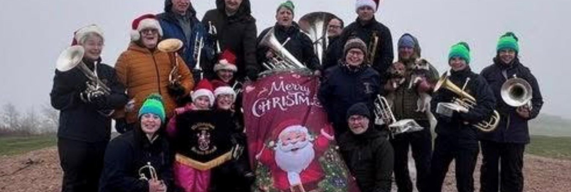 A group of determined players from Wellington (Telford) Brass Band braved wind, rain and some very questionable December weather this week to bring a little festive cheer to the top …